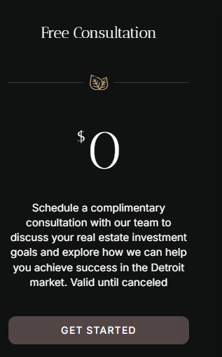 Schedule a complimentary consultation with our team to discuss your real estate investment goals and explore how we can help you achieve success in the Detroit market.